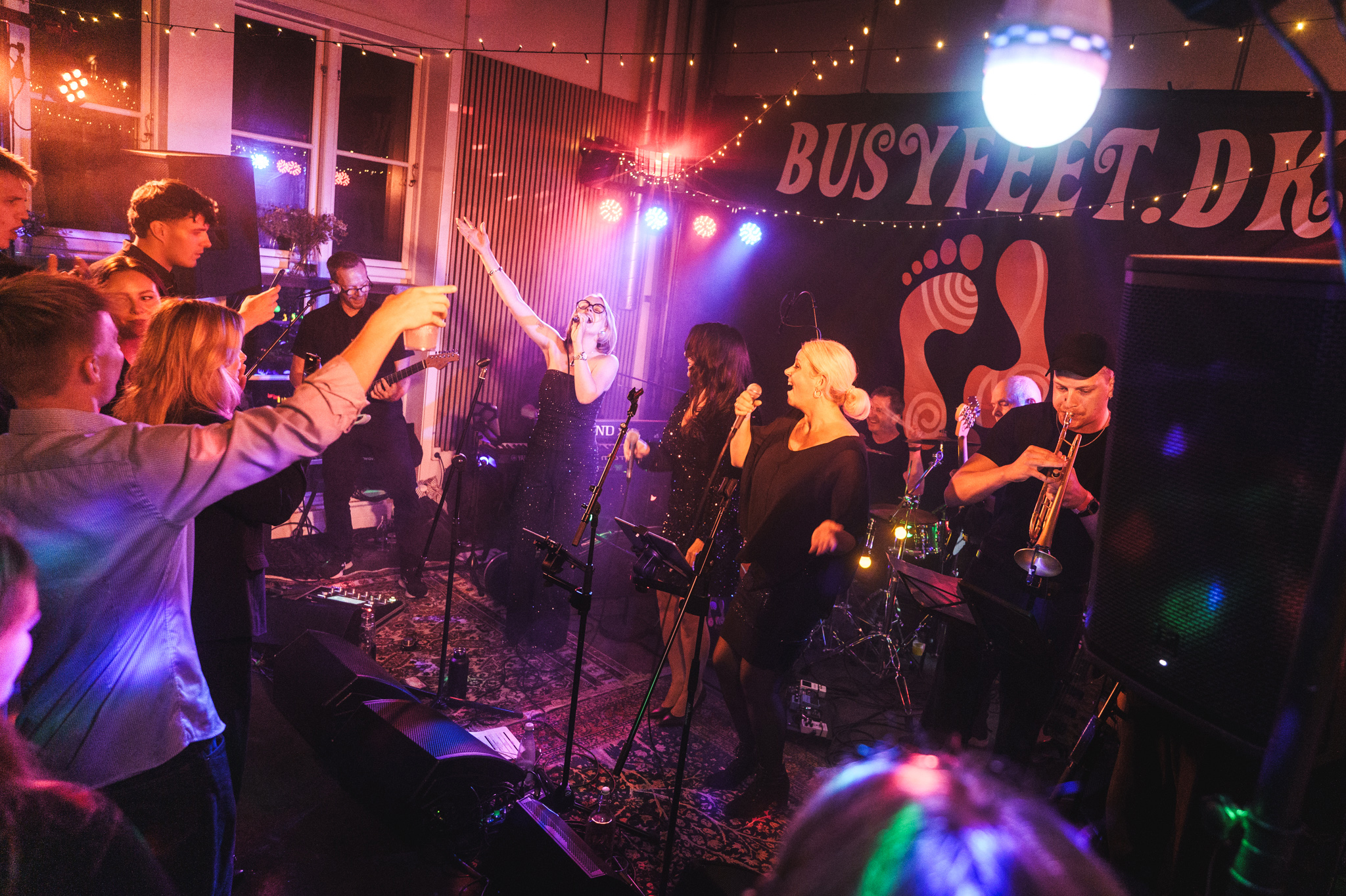 Busy Feet er et energisk og professionelt 8-10-mands (m/k) partyband med to-tre sangere og blæsere, der med garanti fylder dansegulvet hele aftenen. Repertoiret har fokus på en perlerække af 70’ernes og 80’ernes sikre disco-hits, motownklassikere og andre kendte dansenumre med soulede undertoner.